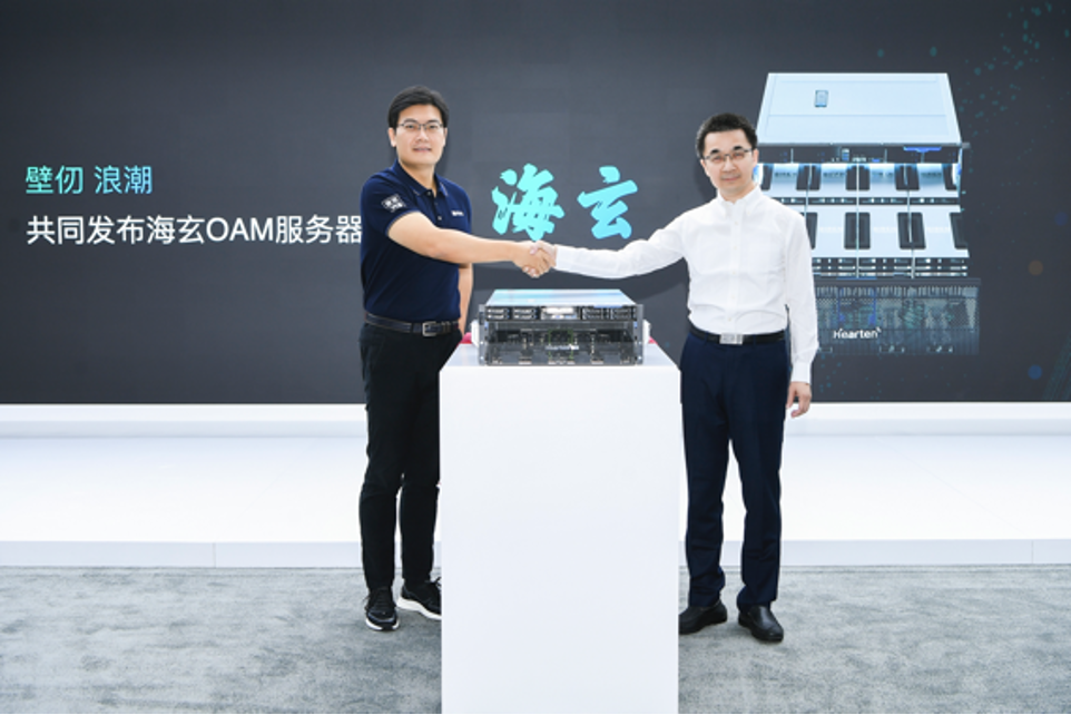 发布会上,壁仞科技联合开创人、总裁徐凌杰和浪潮信息副总裁、AI&HPC产品线总经理刘军,一起开幕OAM服务器——海玄。徐凌杰介绍,该服务器能够供给高达8PFLOPS(8000万亿次每秒)的浮点峰值算力,超过了此前的任何一台8卡加快核算设备的才能。