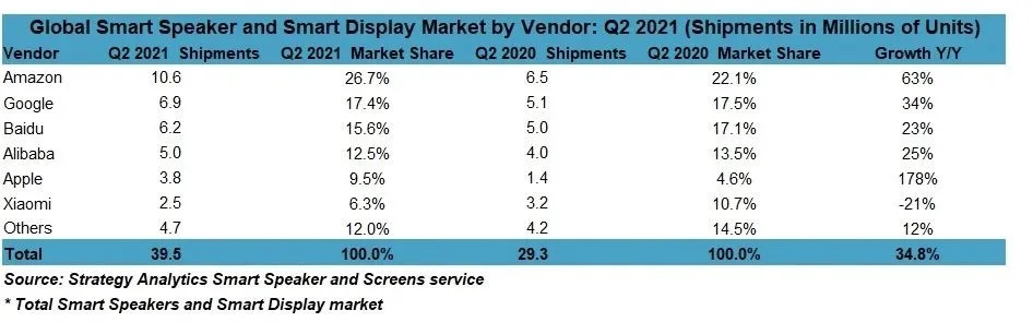 报告:2021 Q2 智能音箱市场正全面复苏,出货量飙升至创纪录水平