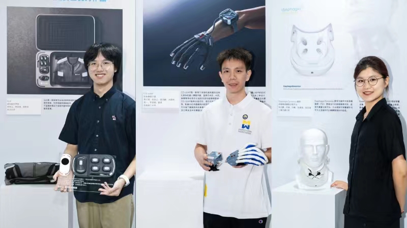 荣获冠军的是同济大学郑青云团队著作——VirtX虚拟触觉服装,该创造为视听觉妨碍人群量身规划,经过电触觉烘托技能,使他们经过触觉“感受到”声波。华南理工大学李元靖团队著作CO-JUMP软体恢复手套荣获亚军,其结合EMG肌电信号传感器和AI视觉辅佐技能的恢复体系,为因神经损害导致手部功能妨碍的患者供给恢复技能,一起还可与恢复医院同享患者数据,完成高效且可继续的病患办理。取得第三名的是上海交通大学朱兆鹏团队的著作Dysphagia Dynamics咽韵吞咽妨碍恢复训练渠道,由颈部可穿戴硬件与PSD健康办理软件组成,为吞咽妨碍患者供给精准评价与家庭恢复训练计划,有用应对老龄化社会下,因脑卒中引起的吞咽妨碍病例不断添加的问题。