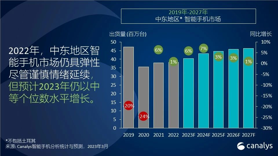 Canalys:2023 年中东智能手机市场迎来春天,增幅将达 6%