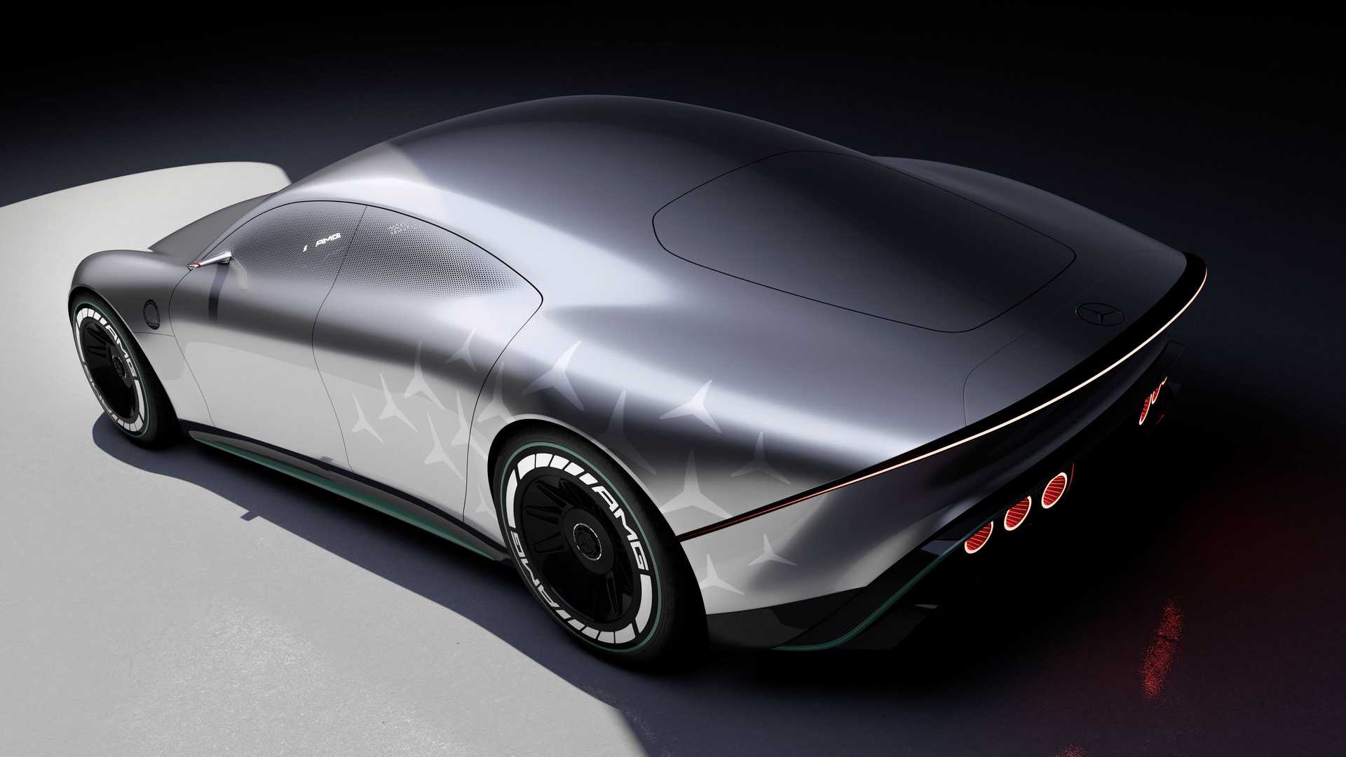 Vision AMG 具有长轴距、短悬垂和低悬垂车身。有显着的挡泥板掩盖大轮子,具有 F1 风格的外观。