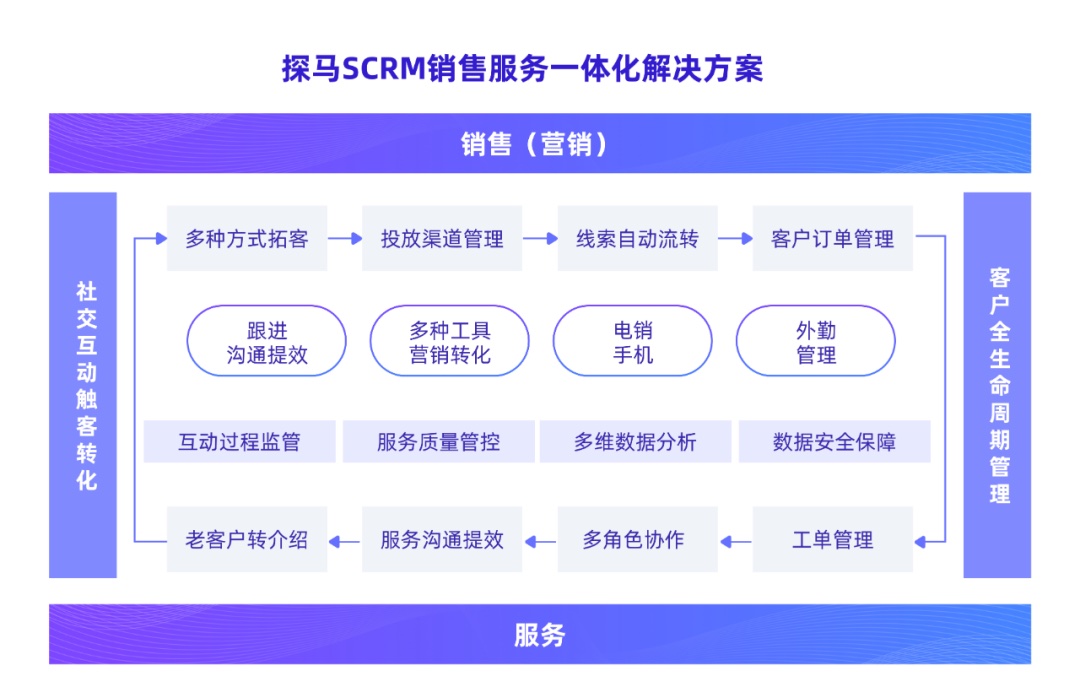 探马 SCRM 根据企业微信,为出售主导型的企业供给“获客-转化-服务-办理”全流程的处理方案。