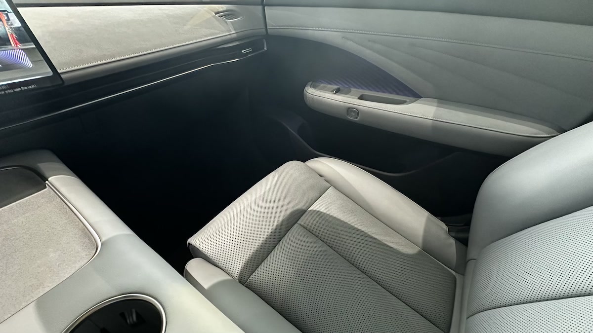车门翻开,用的也是比较受用户喜爱的无框车门,隐藏式手把。外面的轮毂用的是 19 寸的,很吸睛。