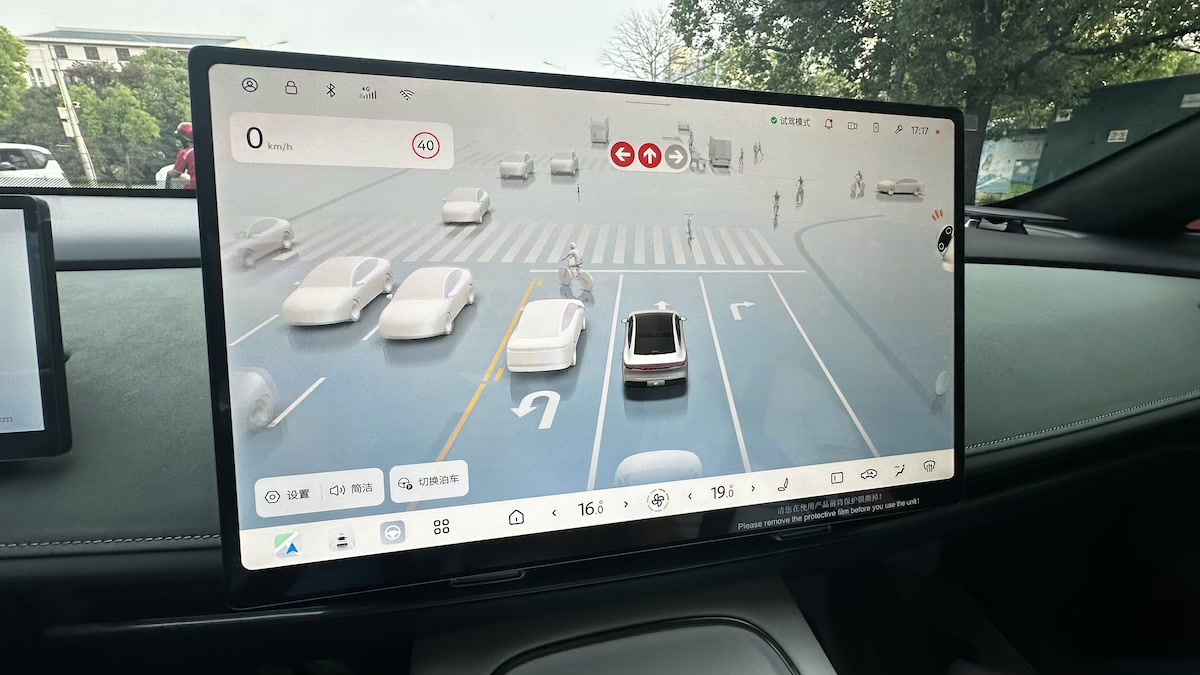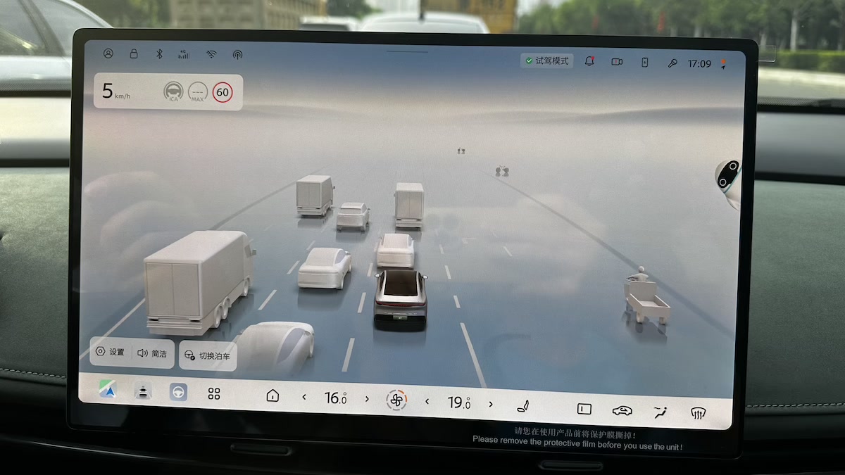 从车机对周边环境的侦测显现来看,仍是比较到位的,关于车辆、电动两轮车、三轮车的辨认比较精准。关于红绿灯,人行道,远端的一些物体的判别,也很到位。