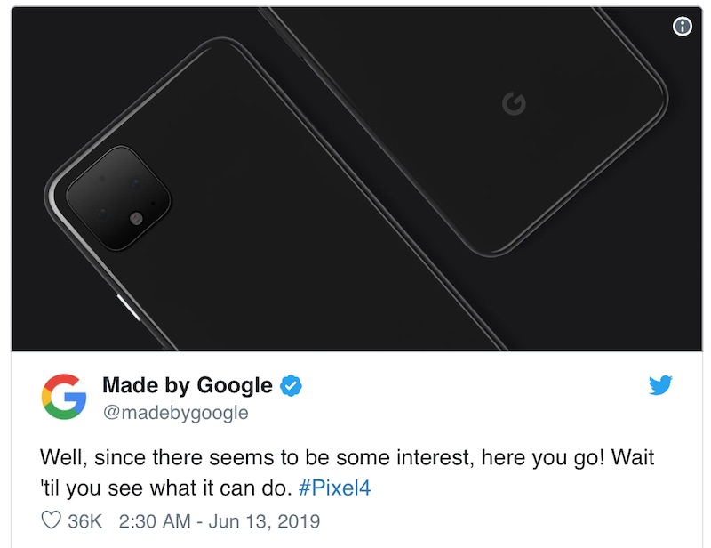 Google 应该会在 10 月正式发布 Pixel 4 系列手机,不知道官方那么早揭露手机规划的做法有何意图。当然,吊胃口的行为也未尝不可,仅仅说不要做得过火,让人等待过高到发布的时分大失人望就不太好了。