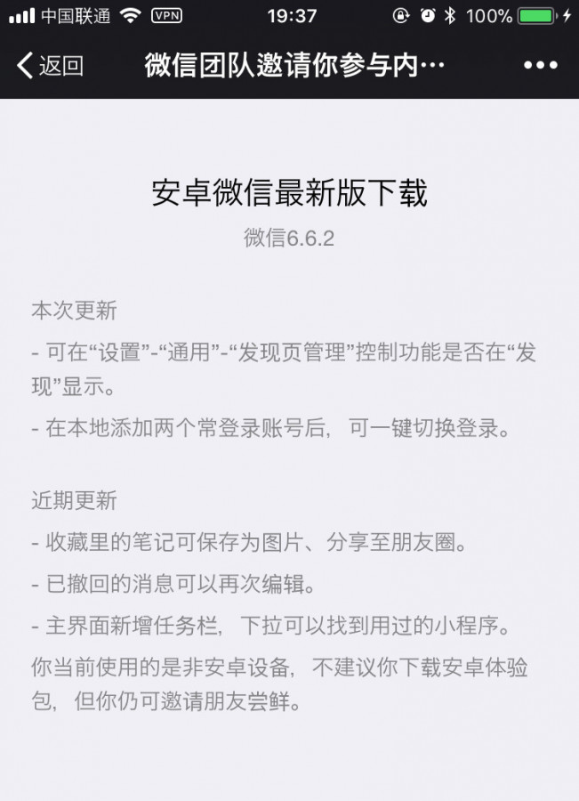 微信最近的几回更新好像都在细节方面进行完善,比如 6.6.0 的